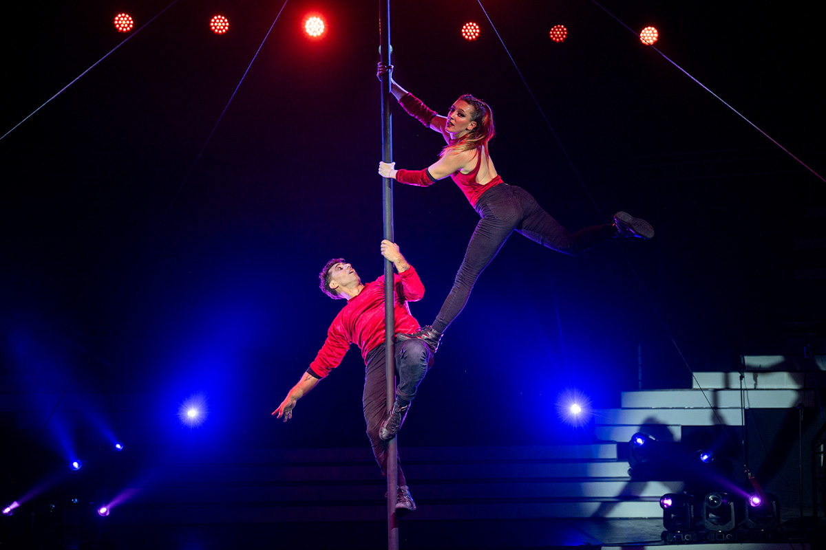 Wenn Ana Paula César und Federico Alberto Mansilla ihre Darbietungen zeigen, gleicht ihre Bühnenkunst einem poetischen Akt voller Liebe, Ekstase und Wahnsinn, der Zirkus, Tanz, Theater und chinesische Pole-Technik zu einer einzigartigen Performance verschmelzen lässt. Ihre gemeinsame Faszination für die Bühne und die Möglichkeit, hier ihre Kreativität voll auszuleben, brachte sie auf die Bühnen internationaler Auftrisstorte. Bereit das Varieté auf den Kopf zu stellen!