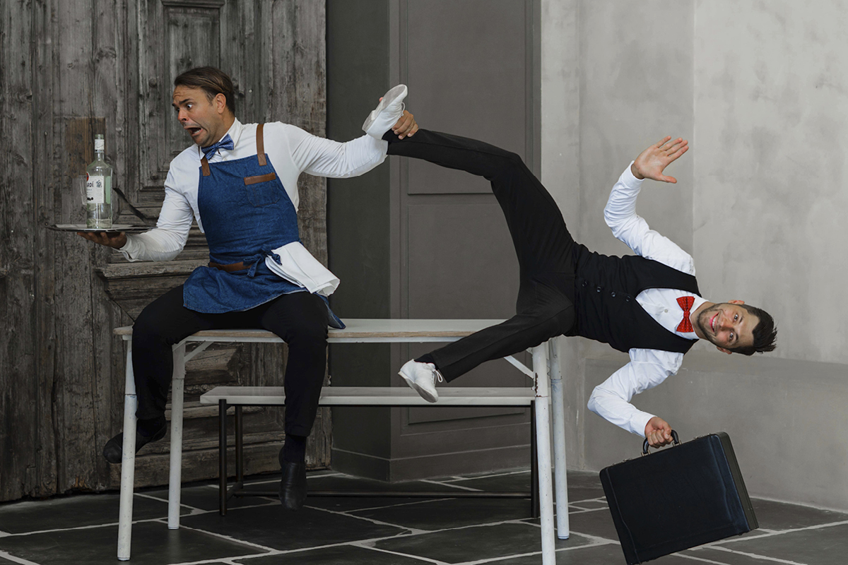 Wie ein gepflegter Restaurantbesuch in ungeahnte Turbulenzen abdriften kann, zeigt auf überaus amüsante Art und Weise das aus Südamerika und Ungarn stammende Duo Gancho. Temporeiche Slapstickelemente rahmen einen rasanten Schlagabtausch zwischen Kellner und Gast. Außerdem führen die beiden ein “Grand Concerto” auf, bei dem der Musikus ein recht ungewöhnliches Instrument dabei hat - nämlich seinen Partner. Dieser ist mal Kontrabass, mal Klavier, mal Akkordeon und auch mal E-Gitarre oder Orgel. Das charmante Duo sorgte bei einem Castingtag für große Heiterkeit und Lachanfälle und steht nun zum ersten Mal auf einer GOP Bühne. Unsere Vorfreude auf diese beiden Spaßvögel ist groß!
