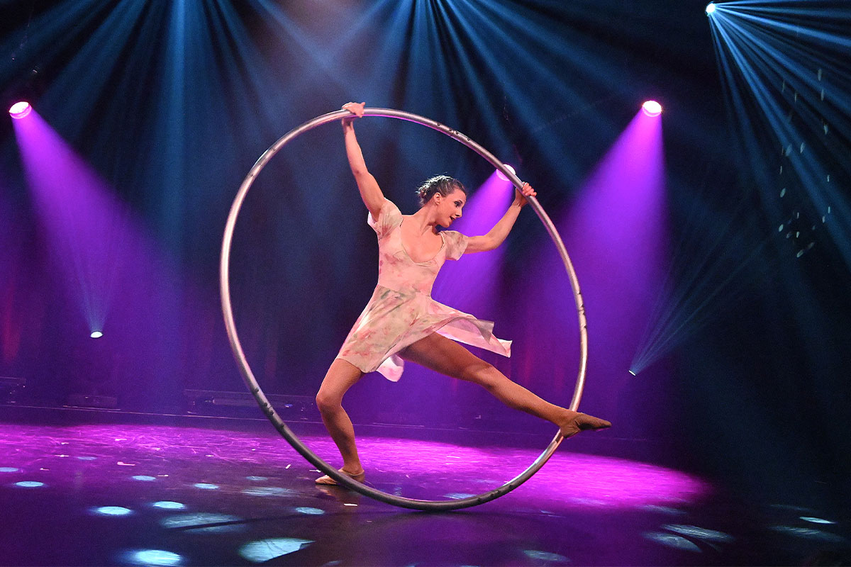 Die in Frankreich geborene Künstlerin Cléa Périon hat ihren Lebensmittelpunkt nach Kanada verlegt und ist von dort aus international auf den Bühnen dieser Welt zu sehen. Ihre technisch ausgefeilte Cyr Darbietung verzaubert das Publikum auf höchstem Niveau und nimmt uns mit auf eine luftig-leichte Reise, immer ein paar Zentimeter über dem Boden. Ein beschwingtes Vergnügen, bei dem man beim Zuschauen vergisst, wie viel Kraft diese akrobatische Disziplin abverlangt. Absolute Spitzenklasse!