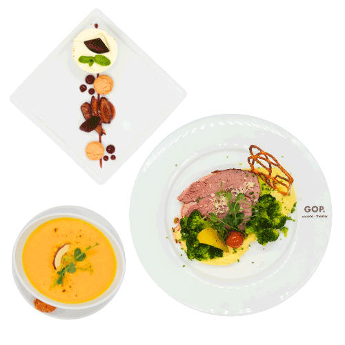 Genießen Sie am Mittwoch oder Donnerstag vor bzw. am Sonntag nach der Show ein köstliches 2- oder 3-Gänge-Menü im Restaurant Leander!