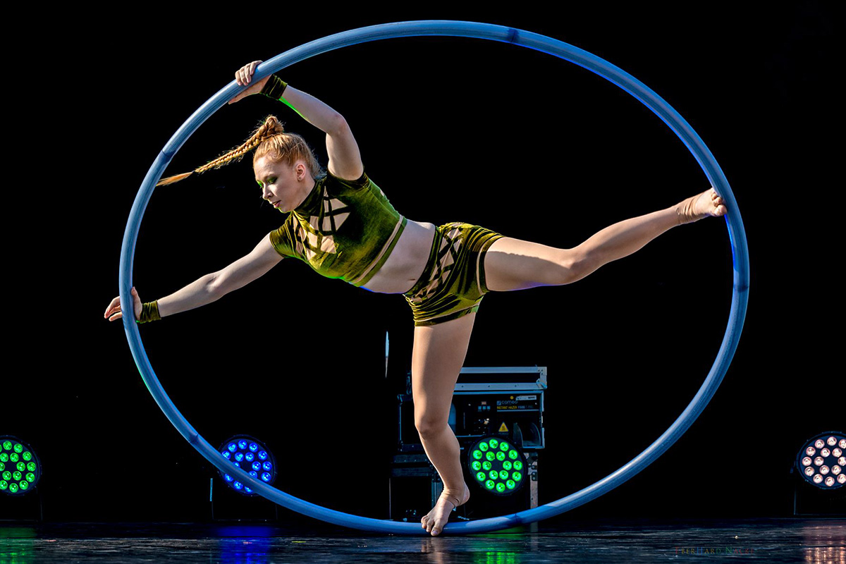 An den Strapaten hebt er scheinbar mühelos die Gesetze der Schwerkraft auf und lässt in seiner zweiten Darbietung wortwörtlich die Welt kopfstehen – wenn er mit seinen Handständen Bilder kreiert, die Ausdruck purer Eleganz zund akrobatischer Exzellenz zeigen. Eine perfekte Symbiose aus Dynamik und Ästhetik!