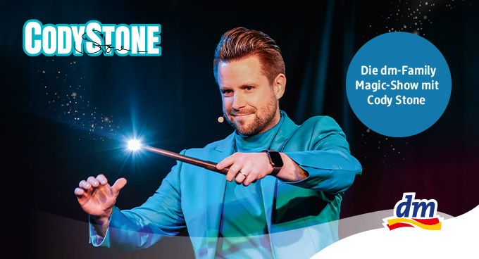 Mit seinen TV-Serien (u. a. Magic Attack auf Super RTL und im Disney Channel) verzauberte Cody Stone bereits Millionen Fernsehzuschauer und begeisterte mit Liveshows in Las Vegas und New York das Publikum. In den Sommerferien sorgt der Magier nun für zwei atemberaubende Nachmittage voller Magie im GOP Varieté-Theater Bremen. Mit viel Humor und seiner wohlfühlenden Energie erzeugt er gemeinsames Staunen, herzerwärmendes Lachen und das gewisse Bauchkribbeln. Drohnen erscheinen wie aus dem Nichts und verwandeln sich in der Luft in Konfetti, eine massive Glasscheibe wird ohne Beschädigungen durchdrungen und wer weiß: Vielleicht schweben sogar Sie frei in der Luft. Das und noch vieles mehr erleben Sie LIVE in der dm-Family-Magic-Show mit Cody Stone.